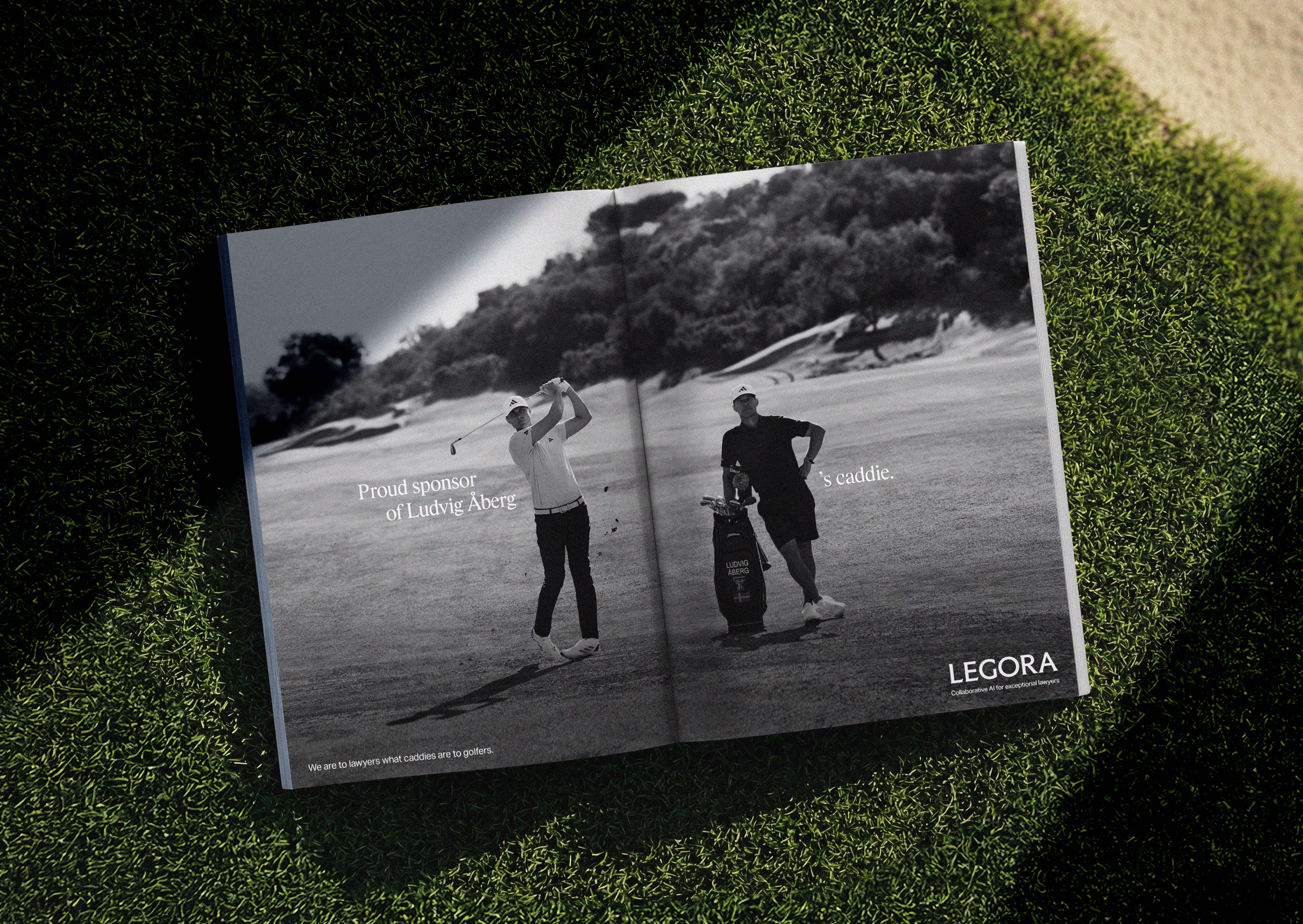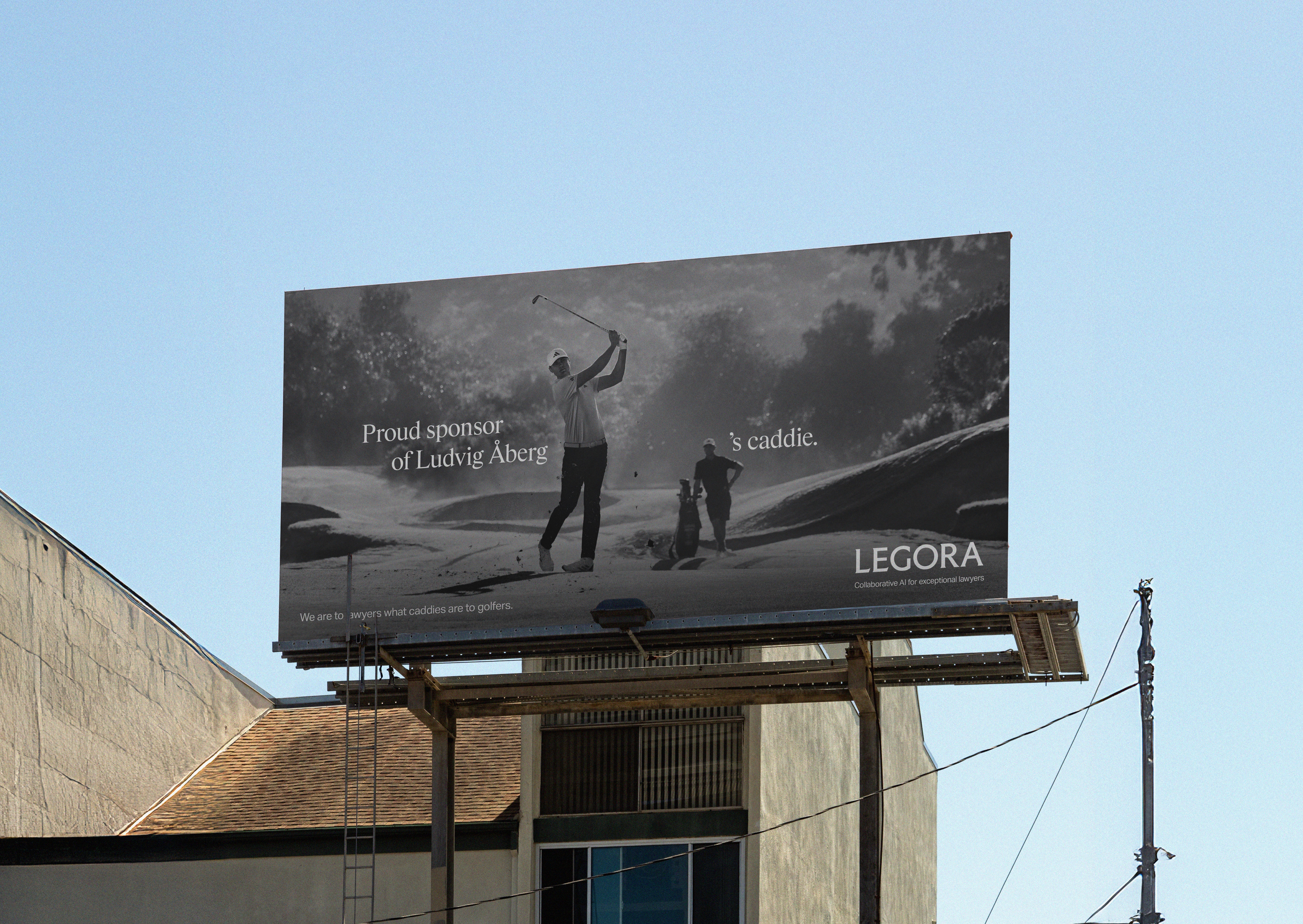 In the spring of 2026, we launch our first campaign together with Swedish-founded legal AI pioneer Legora - the AI-powered platform for lawyers. And since Legora is to lawyers what a caddie is to a golfer, our first campaign together took us to the golf course, as they decided to become a proud sponsor of golf star Ludvig Åberg…’s caddie.